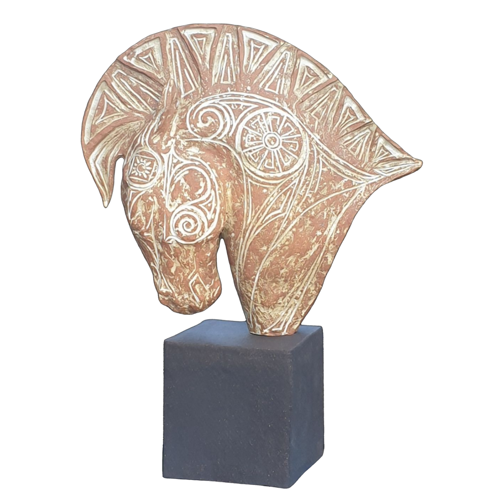 « Ma « gourmandise » et ma curiosité m’ont rapidement amenée à m’intéresser à divers matériaux ; chaque expérience nouvelle me passionne et m’émerveille ! À mes yeux, le sens du travail du sculpteur repose dans sa capacité à observer sans cesse ce qui l’entoure et à préserver la beauté éphémère d’un geste, d’un regard, d’une posture ou d’un instant. Sa capacité à retranscrire une sensation, une impression dans un matériau inerte, au point que ce dernier prenne vie à son tour. Je m’amuse à jouer avec les courbes et les volumes, chaque projet est un défi technique renouvelé qui me permet de nourrir ma pratique et mon instinct. Même si j’ai plaisir à traiter d’autres sujets, le cheval reste ma préférence et c’est ma conviction que l’inspiration émane avant tout de la complicité que l’on peut éprouver vis-à-vis d’une forme primaire et de son caractère. Immortaliser, préserver en sculptant n’est pas une mission, c’est un jeu, un bien-être… un refuge peut-être, dans lequel on peut enfin ressentir de l’apaisement. »